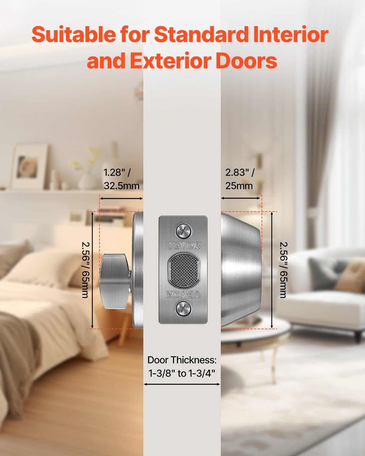 1.Compatible with Standard Interior and Exterior Doors: Our deadbolt lock is designed to fit standard indoor and outdoor doors with a thickness of 1-3/8 inches to 1-3/4 inches, including bedroom doors, kitchen doors, bathroom doors, entry doors, patio doors, and even commercial shop doors